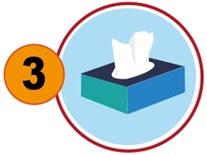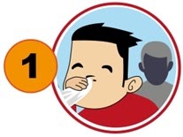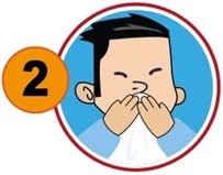 Tutup hidung & mulut anda dengan tisu/ sapu tangan ketika batuk/ bersin