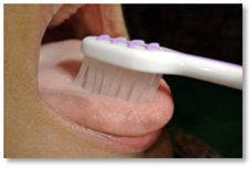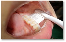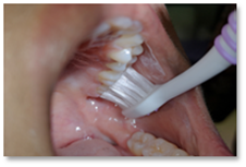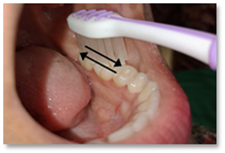 Berus bahagian dalam gigi rahang bawah dengan gerakan membulat meliputi permukaan gigi dan gusi