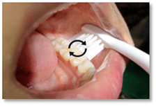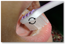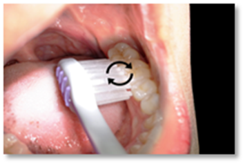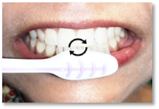 Buat gerakan membulat meliputi permukaan gigi dan gusi sebanyak 8-10 kali